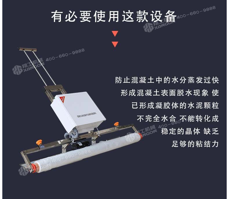 混凝土澆注后,如果養(yǎng)護(hù)不及時(shí)就容易產(chǎn)生一些不良效果,如氣候炎熱、空氣干燥等情況,我們就有必要使用這款設(shè)備,防止混凝土中的水分蒸發(fā)過(guò)快,形成混凝土表面脫水現(xiàn)象,使已形成凝膠體的水泥顆粒不完全水合,不能轉(zhuǎn)化成穩(wěn)定的晶體,缺乏足夠的粘結(jié)力。因此,混凝土表面會(huì)出現(xiàn)剝落或粉粒脫落。另外,當(dāng)混凝土強(qiáng)度不夠時(shí),過(guò)早蒸發(fā)水分會(huì)產(chǎn)生較大的收縮變形和干縮裂縫。因此,混凝土澆筑后的初期養(yǎng)護(hù)非常重要,終凝后應(yīng)立即進(jìn)行養(yǎng)護(hù)。