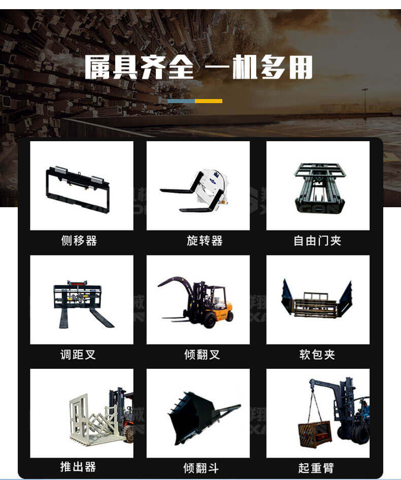 T35A型內(nèi)燃越野叉車可以在坡地和不平地面上進(jìn)行貨物裝、卸、堆垛及搬運(yùn)作業(yè),具有良好的機(jī)動(dòng)性、越野性可靠性。其功能多樣,可搭配側(cè)移器、調(diào)距叉、旋轉(zhuǎn)器、軟包夾、推出器、側(cè)翻叉、側(cè)翻斗、起重臂等工具完成不同的工作。