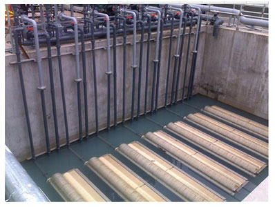 ?。?)調(diào)節(jié)池出水用提升泵提升到缺氧池,同時(shí)經(jīng)過曝氣硝化過的污水回流進(jìn)行反硝化脫氮。出水進(jìn)入接觸氧化池,通過曝氣進(jìn)行好氧生化處理同時(shí)進(jìn)行硝化反應(yīng)。